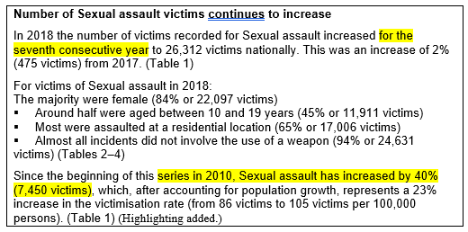 [50] Source: ABS. (2019b). 4510.0 – Recorded Crime – Victims, Australia, 2018. 27 June 2019.