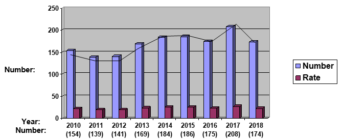 [51] Source: ABS. (2019c). 45100DO004_2018 Recorded Crime – Victims, Australia, 2018. Table 16 Victims, Selected offences by Indigenous status, Selected states and territories, 2010–2018.